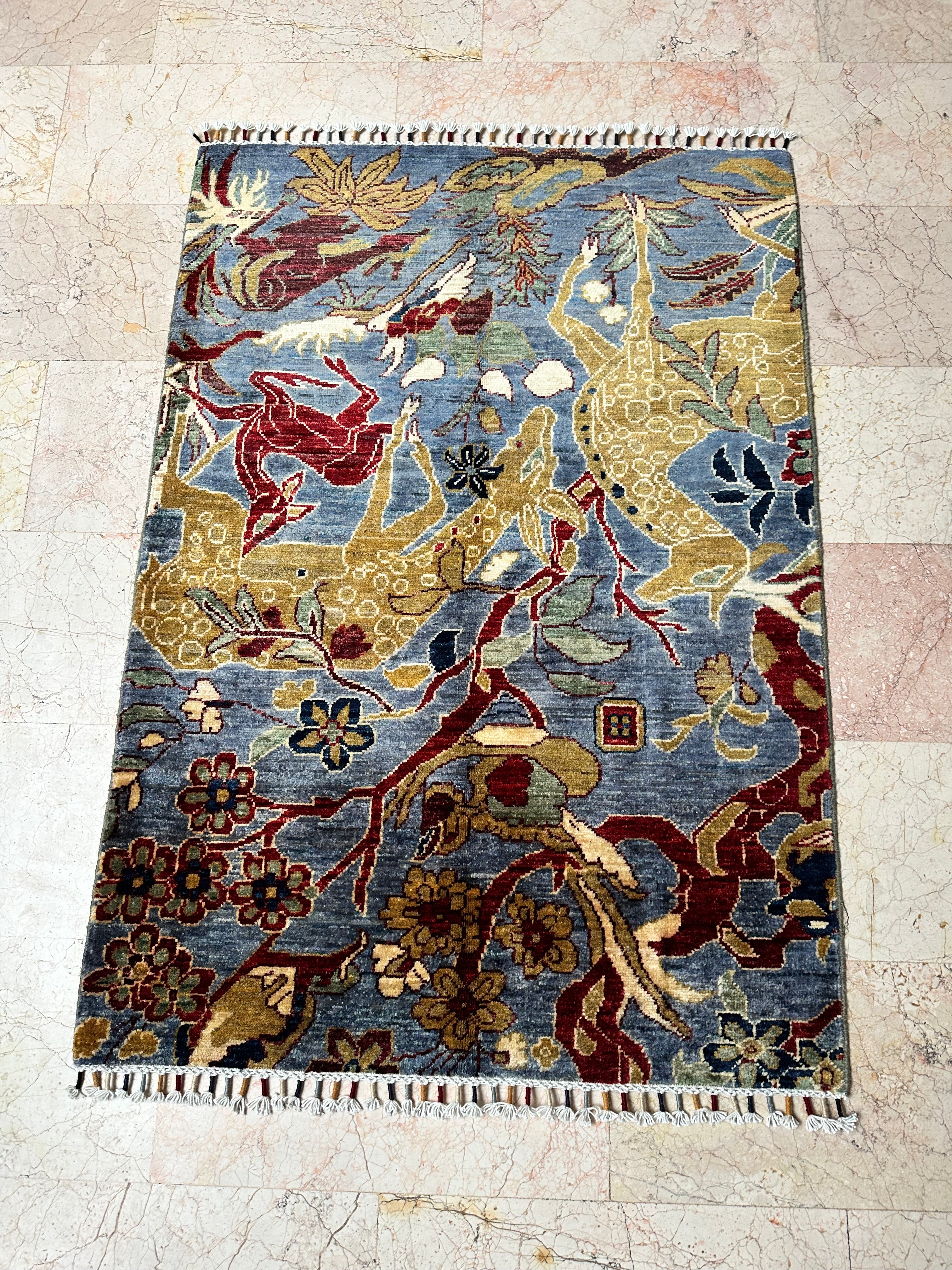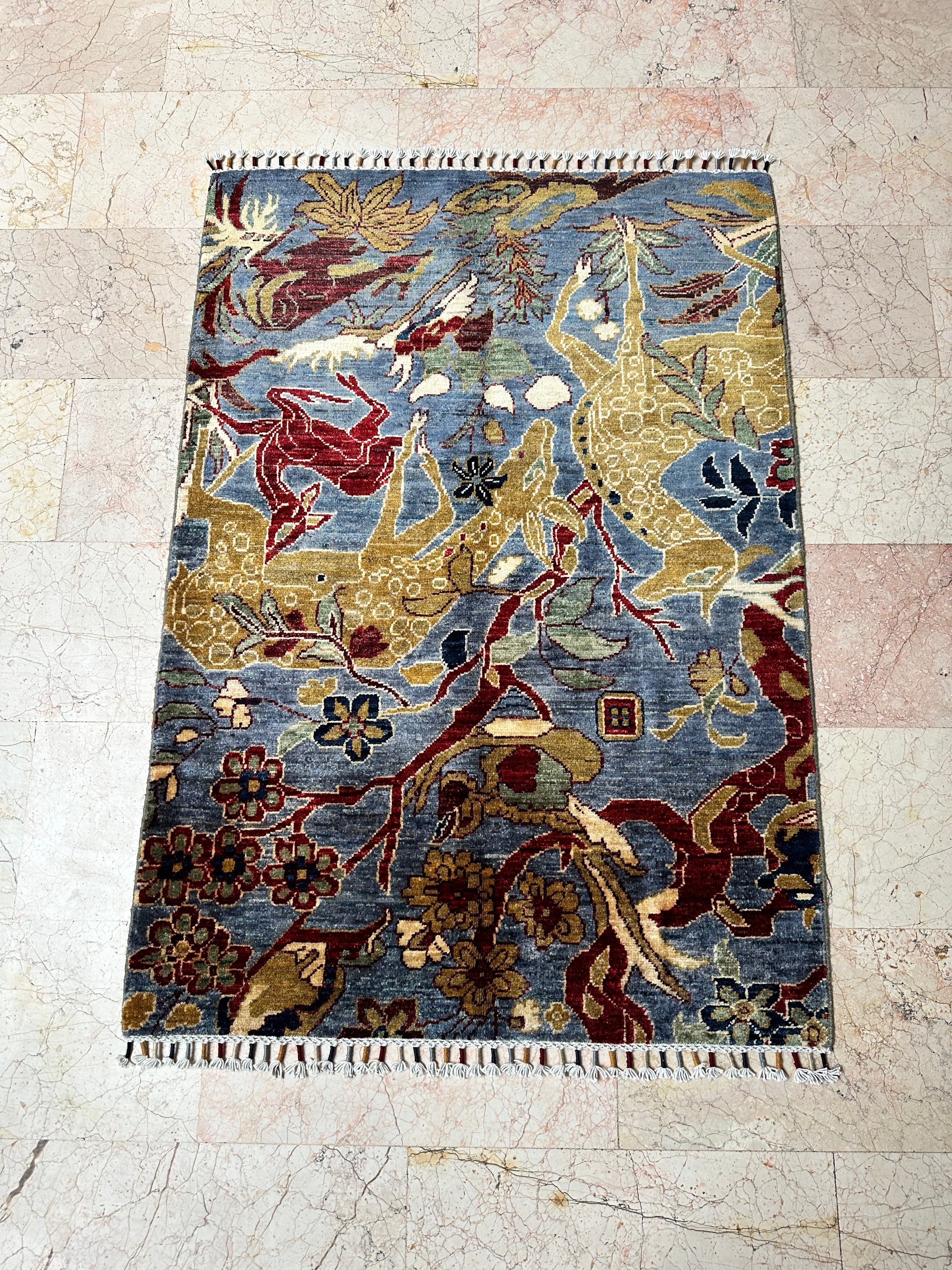 Afghan Animal Design Rug – Hand-Knotted Wool Carpet 148x105cm (4.8x3.4ft), Pictorial Oriental One of a Kind