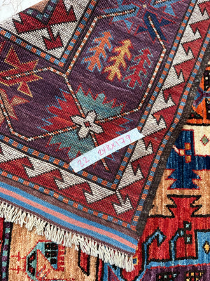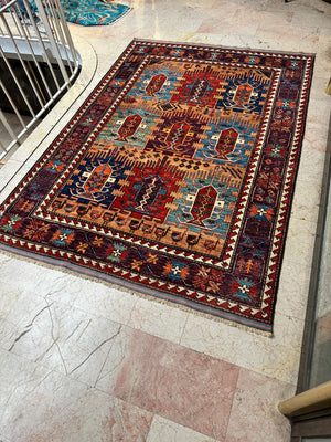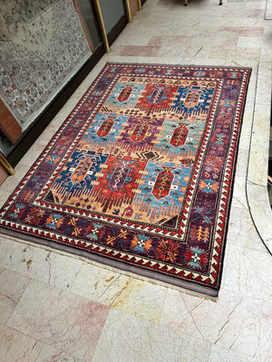 Handmade Afghan Rug – Hand-Knotted Wool Carpet 248x179cm (8.1x5.9ft), Geometric Tribal Design, One of a Kind