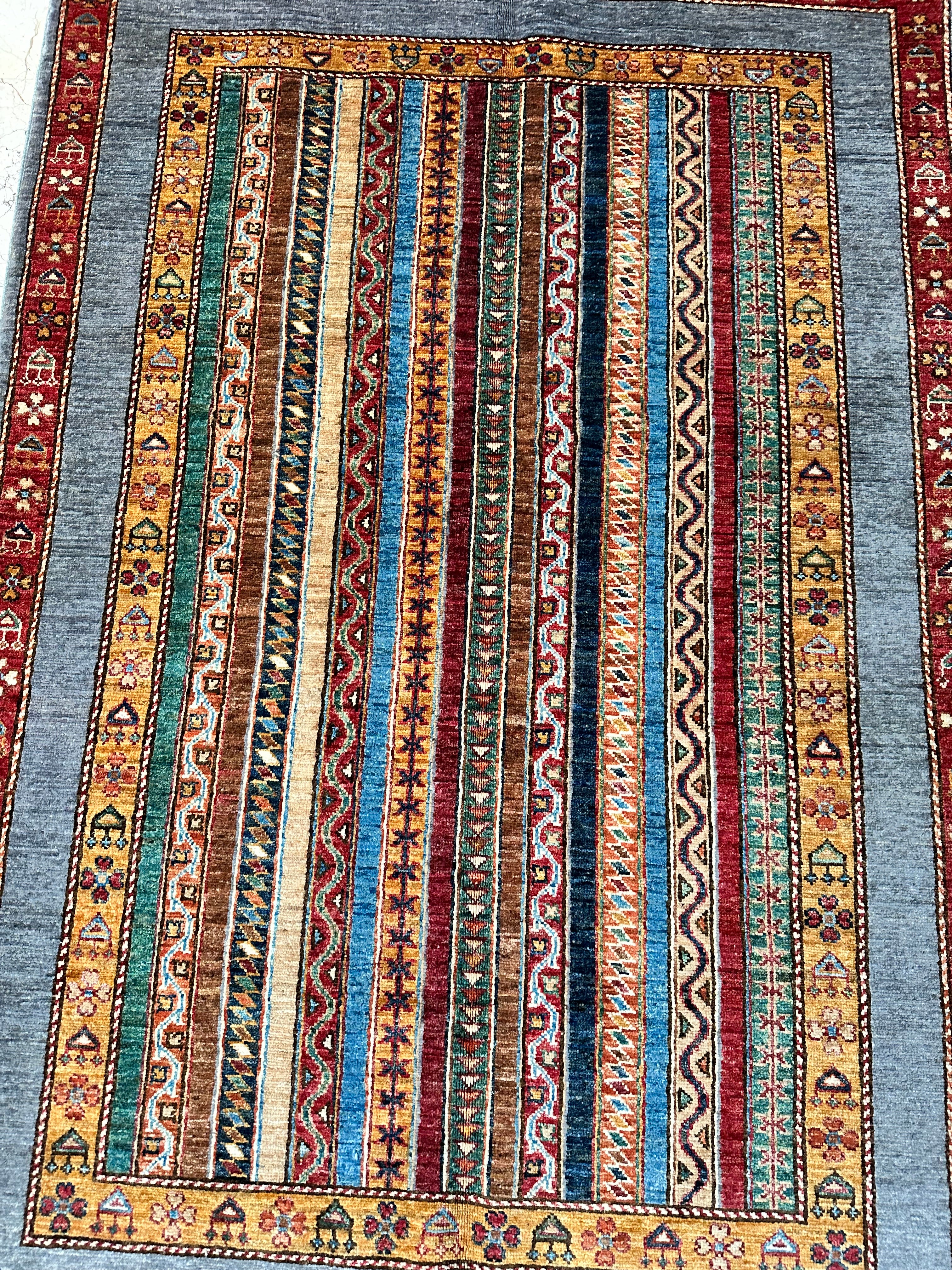 Afghan Sultani Rug – Hand-Knotted Wool Carpet 180x123cm (6x4ft), Shawl Pattern Striped Oriental One of a Kind