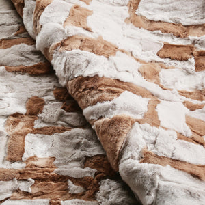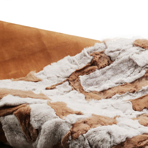 Brown and White Rex Rabbit Fur Rug – Handmade Luxury Soft Fur Carpet, Custom Size Area Carpet
