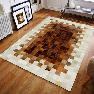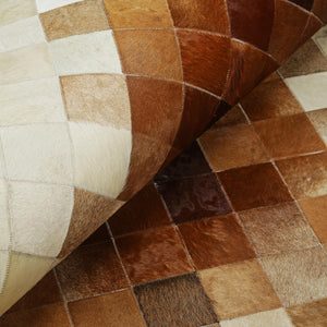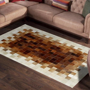 Beige & Brown Ombre Patchwork Calfskin Rug