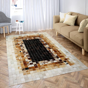 Transform your living space with the sophisticated charm of our Beige & Brown Patchwork Calfskin Carpet. Featuring a stunning ombre frame and natural plaid design, this genuine cowhide rug seamlessly blends modern aesthetics with rustic appeal. The rich brown and beige tones create a warm, inviting ambiance, making it an ideal centerpiece for living rooms, offices, or bedrooms. Handcrafted from authentic cowhide, this durable yet luxurious rug offers a unique texture and timeless elegance. Perfect as a thoughtful new home gift or a stylish upgrade to your decor.