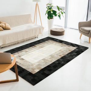 Transform your space with this Beige Cowhide Rug with Black Border, a blend of natural elegance and modern craftsmanship. The genuine calfskin material showcases unique textures and patterns, making each piece truly one-of-a-kind. The striking black border adds a contemporary touch to the classic beige tones, creating a versatile rug that complements any decor style. Whether enhancing a rustic farmhouse or a sleek urban apartment, this handmade leather carpet offers both functionality and sophistication. Ideal for living rooms, offices, or bedrooms, this luxury home gift is as durable as it is beautiful.