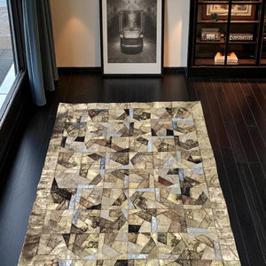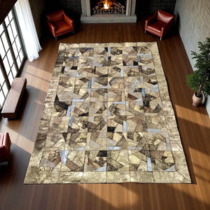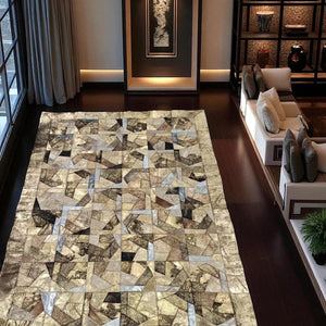 Geometric Patchwork Cowhide Rug – Handmade Genuine Leather Area Carpet, Custom Size