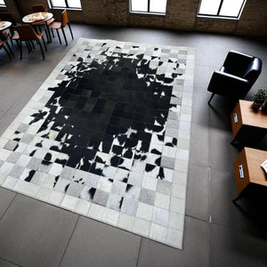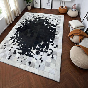 Black and White Cowhide Patchwork Rug, Genuine Leather Area Carpet