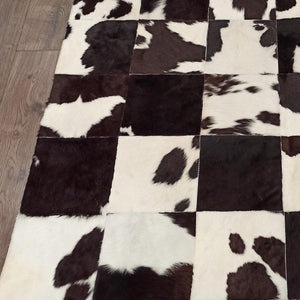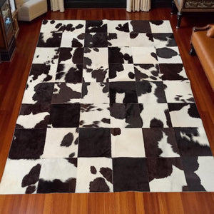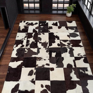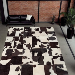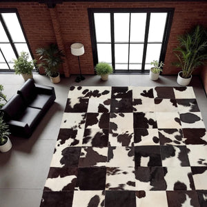 Black and White Cowhide Patchwork Rug, Real Leather Area Rug