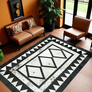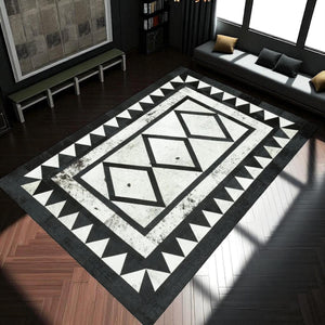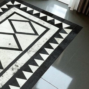 Black and White Cowhide Rug, Modern Patchwork Area Carpet