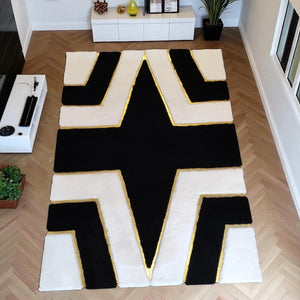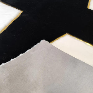 Add a sleek and modern touch to your interior with this Black and White Plush Rug. Crafted from premium plush fabric, this rug features a minimalist cream surface intersected by shimmering silver lines that create a geometric and elegant look. Its soft texture and contemporary design make it a perfect centerpiece for living rooms, bedrooms, or offices.