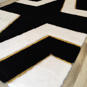 Black and White Plush Area Rug, Custom Size Plush Carpet