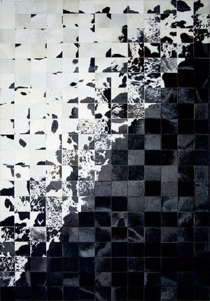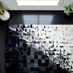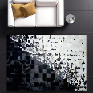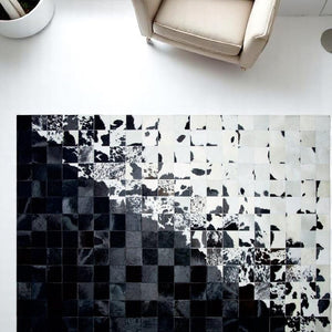 Black and White Cowhide Rug, Checkered Natural Calfskin Carpet