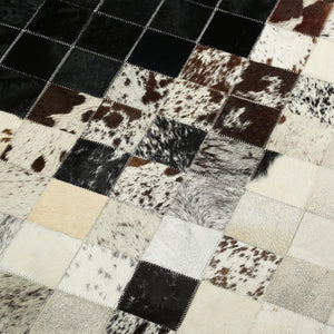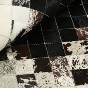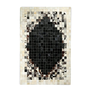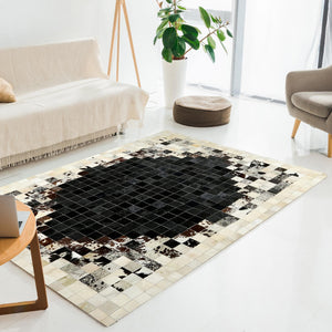 Black & Beige Cow Leather Gradient Design Patchwork Rug