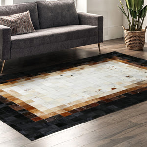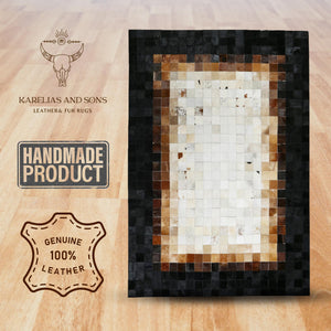 Bring timeless elegance to your home with the Black Ombre Framed Cream Cowhide Rug. This stunning checkered calfskin rug features a unique ombre-framed design, combining cream and black tones for a sophisticated look. Handcrafted from genuine cowhide leather, this natural leather rug offers durability and style, making it perfect for living rooms, bedrooms, or offices. Its plaid pattern adds a touch of modern charm while maintaining a rustic feel, ideal for country or contemporary decor. A perfect new home gift for those who appreciate quality craftsmanship and luxury.