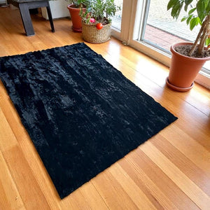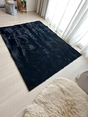 Black Rex Rabbit Fur Rug, Handmade Luxury Soft Carpet for Living Room and Bedroom