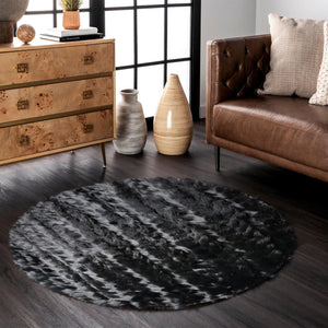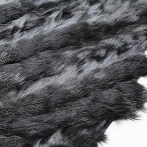 Black Fox Fur Round Carpet, Genuine Fox Leather Shaggy Rug
