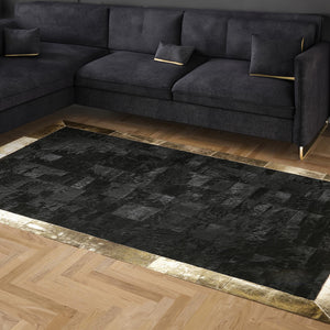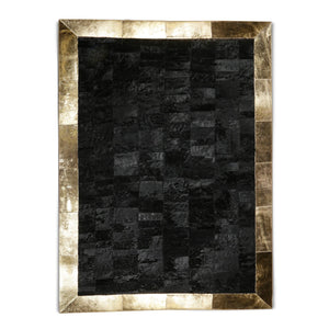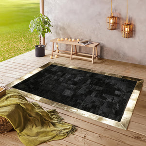 Black Genuine Cowhide Rug with Gold Border