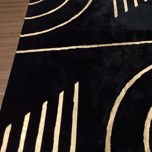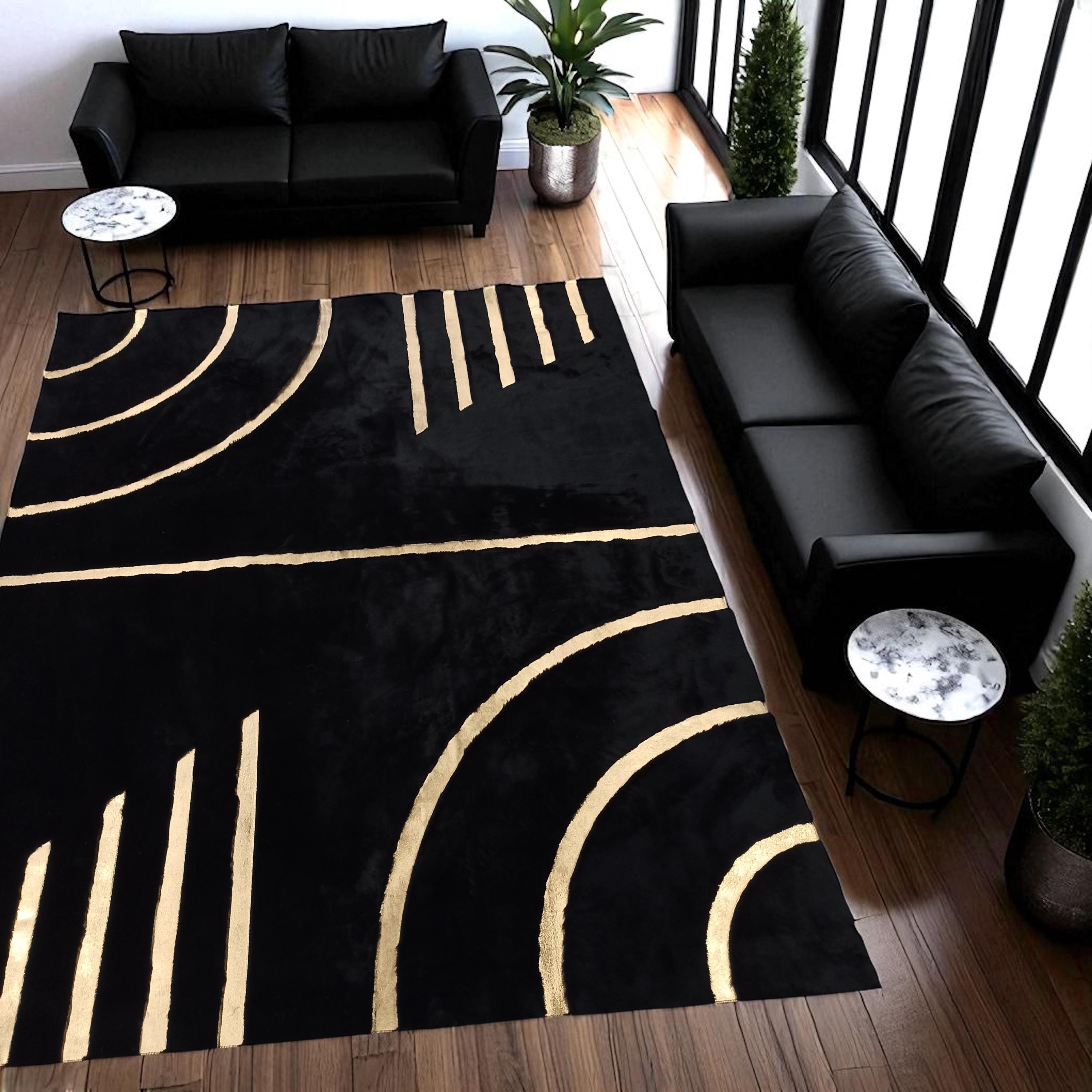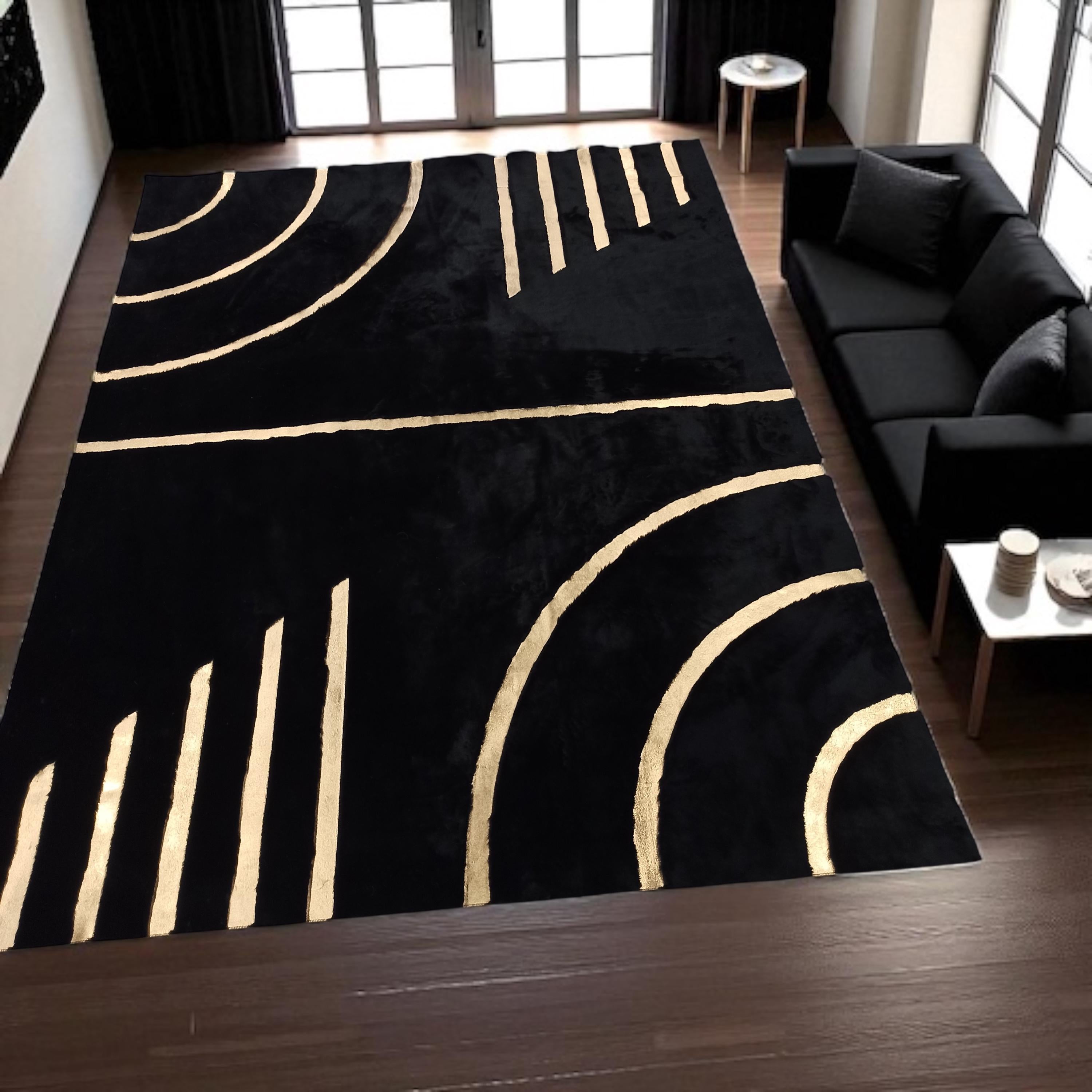 Black Gold Plush Area Rug, Modern Living Room Carpet