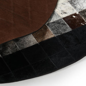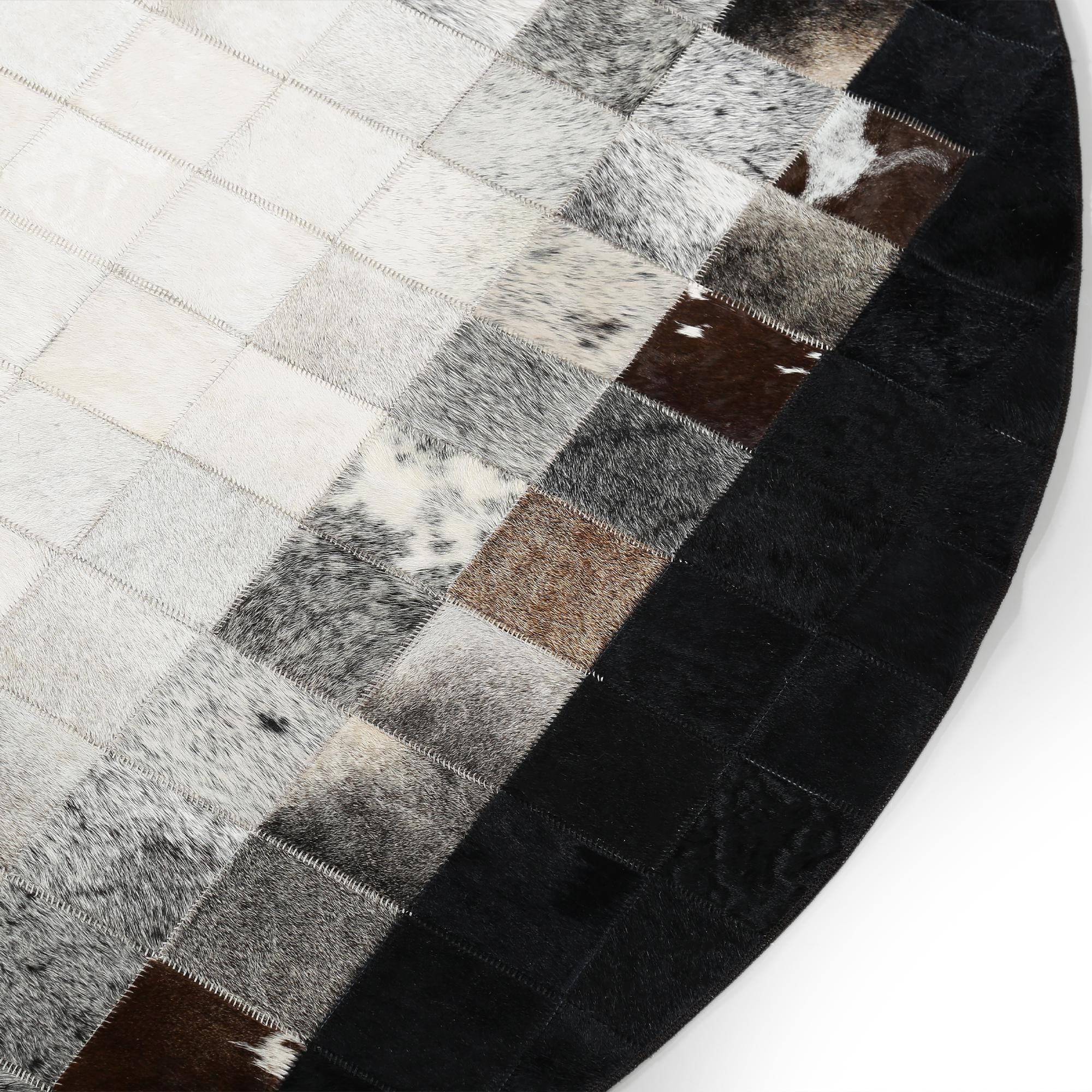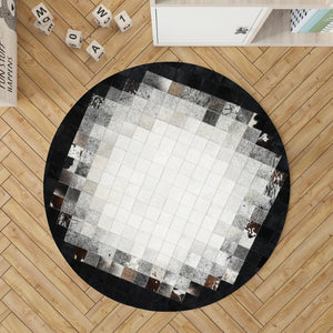Round Cowhide Rug Black White – Handmade Ombre Patchwork Leather Area Rug