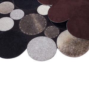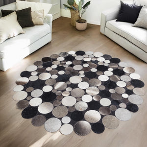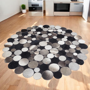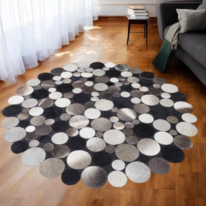 Modern Polkadot Cowhide Rug, Handmade Round Patchwork Leather Carpet