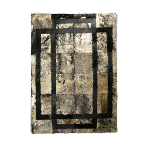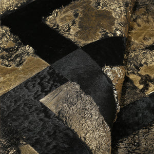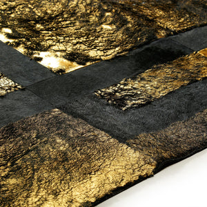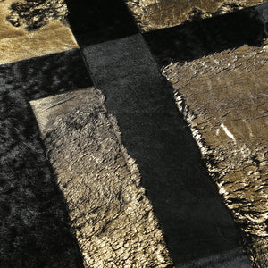 Black Lined Gold Leaf Cowhide Patchwork Rug