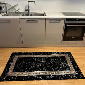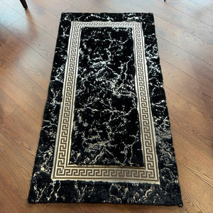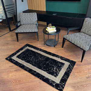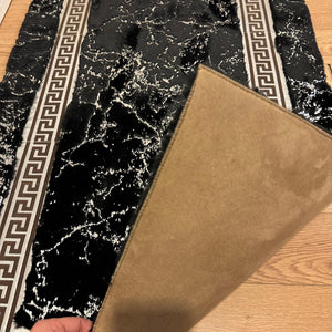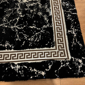 Add a sleek and modern touch to your interior with this  Black Plush Rug. Crafted from premium plush fabric, this rug features a minimalist cream surface intersected by shimmering silver lines that create a geometric and elegant look. Its soft texture and contemporary design make it a perfect centerpiece for living rooms, bedrooms, or offices.