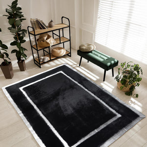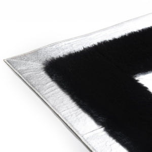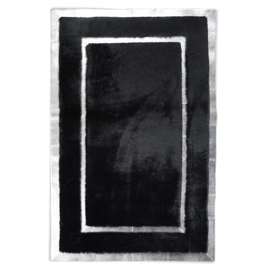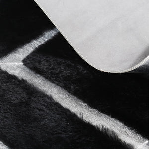 Add a sleek and modern touch to your interior with this  Gray and Black Plush Rug. Crafted from premium plush fabric, this rug features a minimalist cream surface intersected by shimmering silver lines that create a geometric and elegant look. Its soft texture and contemporary design make it a perfect centerpiece for living rooms, bedrooms, or offices.