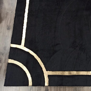 Black Plush Rug with Geometric Gold Accents – Modern Luxury Soft Area Carpet