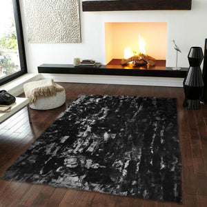Luxury Black Rabbit Fur Rug, Genuine Handmade Soft Carpet for Living Room