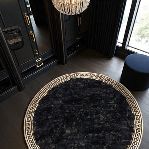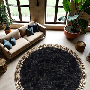 Black Round Tuscan Rug, Handmade Natural Living Room Carpet