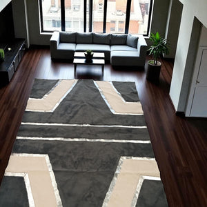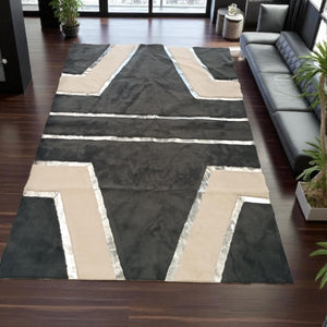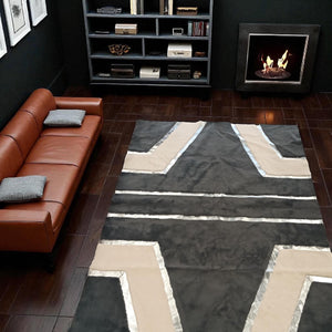 Add a sleek and modern touch to your interior with this Dark Grey Plush Rug. Crafted from premium plush fabric, this rug features a minimalist cream surface intersected by shimmering silver lines that create a geometric and elegant look. Its soft texture and contemporary design make it a perfect centerpiece for living rooms, bedrooms, or offices.