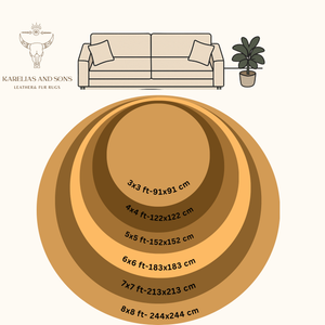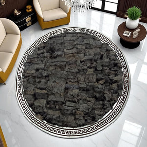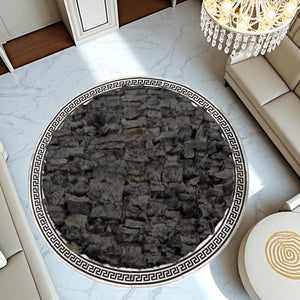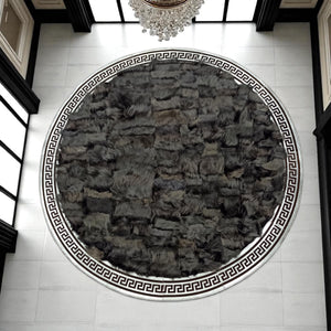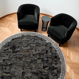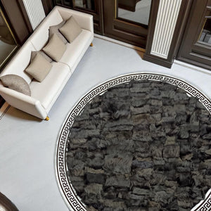 This Round Black Tuscan Rug brings timeless elegance and natural texture to your home. Crafted from 100% genuine Tuscan sheepskin, it features deep black tones with a subtle sheen, creating a refined and sophisticated look. The detailed border adds a luxurious accent, making it a statement piece in any space.