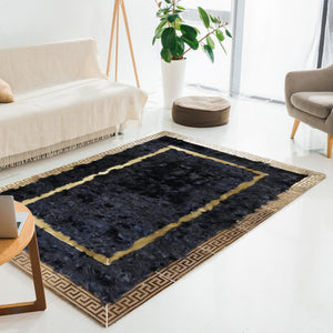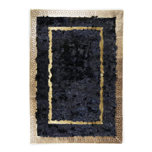 Elevate your home decor with the luxurious Black Tuscan Rug with Gold Frame. Crafted from genuine sheepskin, this shaggy carpet features a striking gold border that adds a touch of sophistication and elegance to any space.