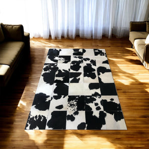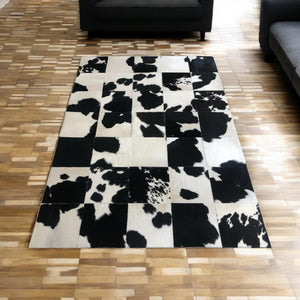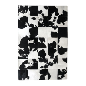 Black & White Cow Print Cowhide Patchwork Rug, Handmade Living Room Carpet