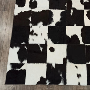 Black White Cowhide Patchwork Rug, Genuine Leather Area Carpet