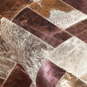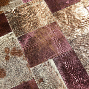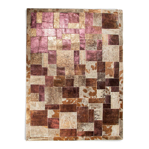 Bronze & Pink Leaf Cowhide Patchwork Rug