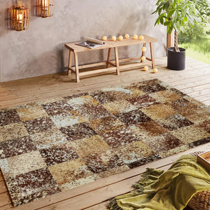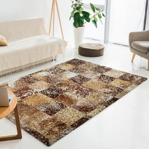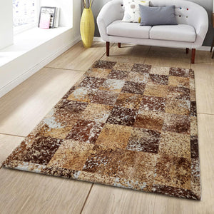 Brown Cow Skin Texture Patchwork Rug, Handmade Living Room Carpet