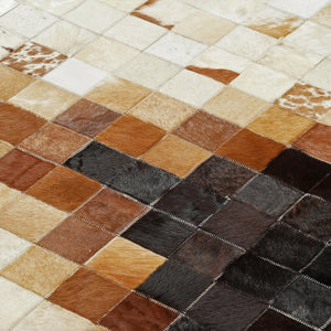 Add timeless sophistication to your home with our Brown & Cream Cowhide Patchwork Rug. This rug features a stunning ombre effect with natural calfskin leather, transitioning seamlessly from brown to cream tones. Its unique diamond-pattern checkered design blends rustic charm with modern elegance, making it a versatile piece for farmhouse or contemporary interiors. Handcrafted from genuine cowhide, this durable and luxurious carpet is perfect for living rooms, bedrooms, or offices. Whether enhancing your home decor or gifting to loved ones, this rug is an exquisite choice that combines practicality with style.