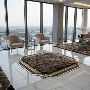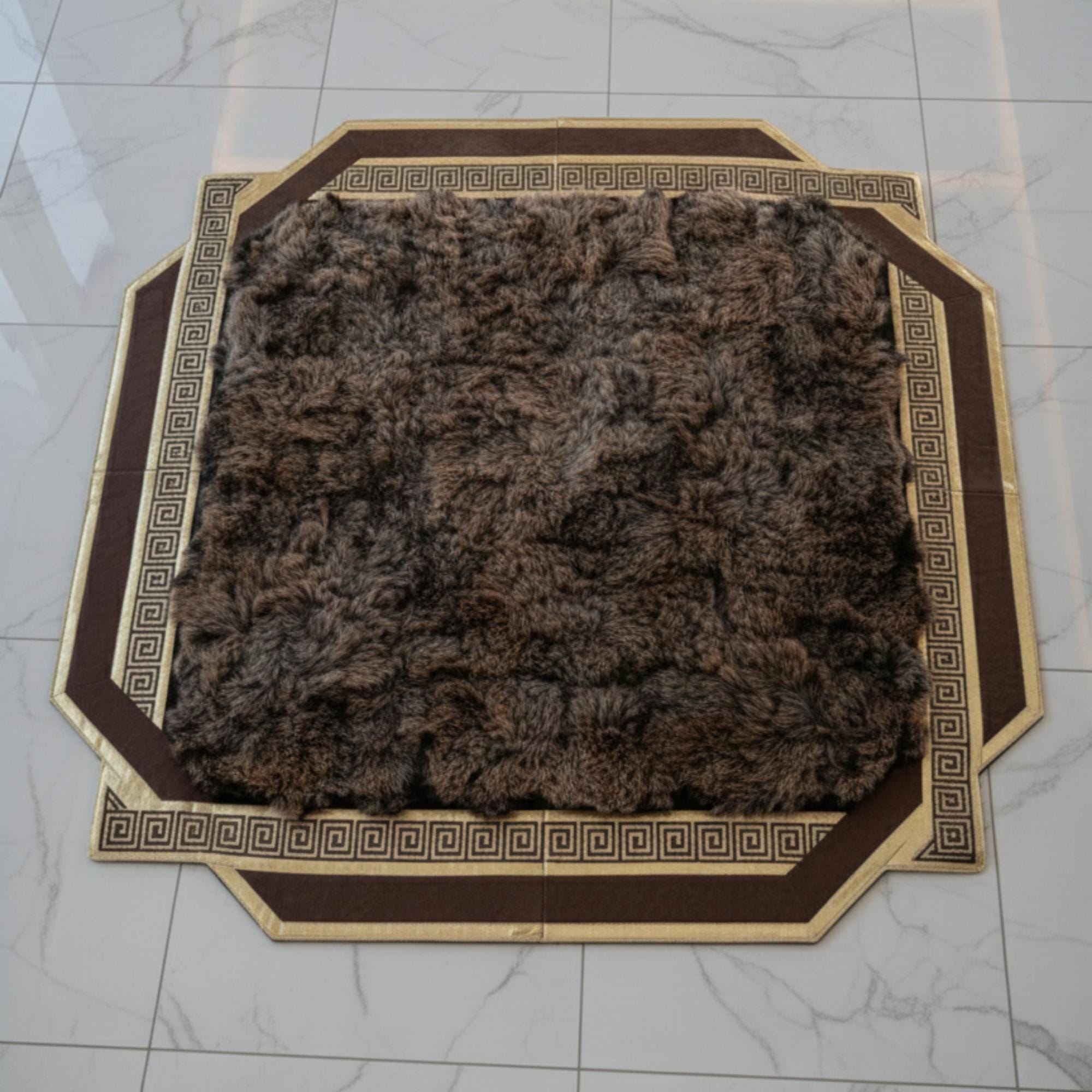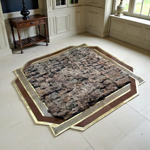 Brown Tuscan Fur Rug, Gold Geometric Tuscan Rug