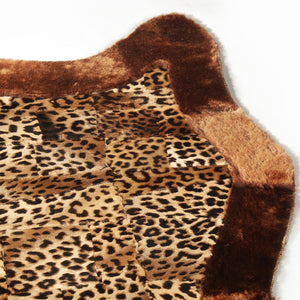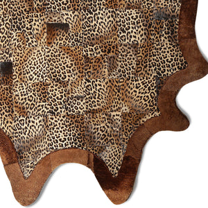 Brown Framed Leopard Print Genuine Leather Peltry Rug 5.7ft x 7.1ft
