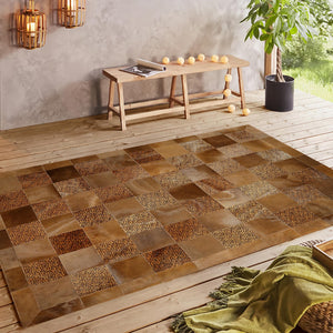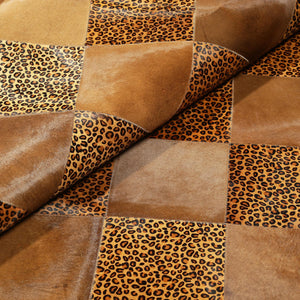 Enhance your space with the Brown & Leopard Print Cowhide Patchwork Rug, a perfect blend of rustic charm and contemporary elegance. This genuine calfskin rug features a rich brown patchwork design bordered with bold leopard print, creating a standout piece for country-style or farmhouse interiors. Handcrafted with care, its natural cow skin texture ensures durability and sophistication. Ideal for living rooms, bedrooms, or cozy offices, this unique rug offers warmth and character to any setting. A thoughtful farmhouse gift, it’s both stylish and functional, perfect for adding a touch of nature-inspired luxury to your decor.