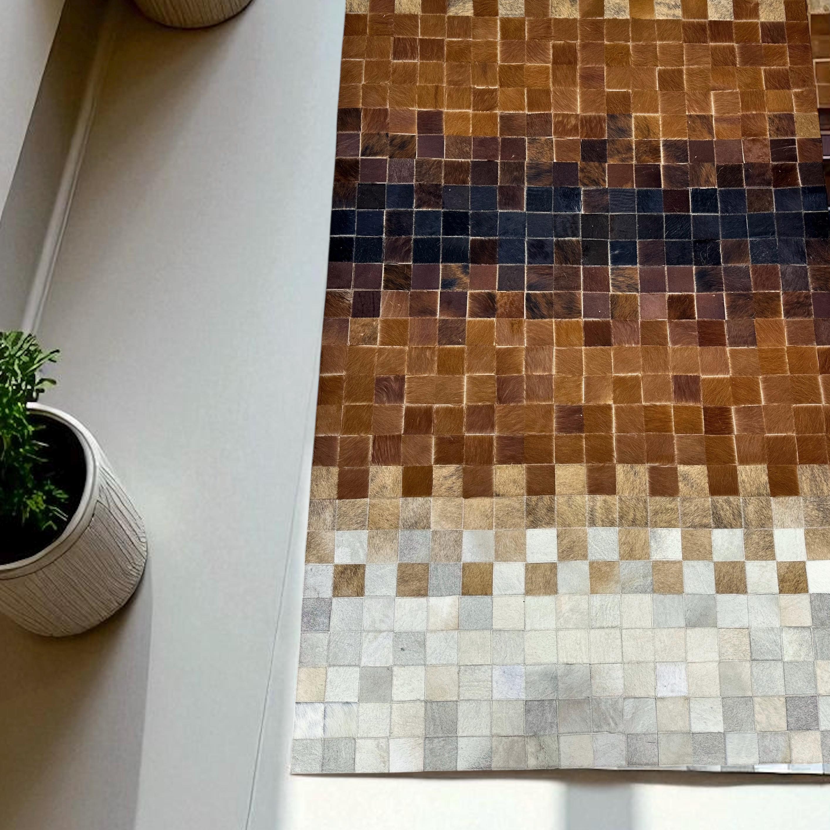 Add a touch of timeless texture and natural elegance to your space with our Brown Ombre Cowhide Rug, beautifully crafted from 100% genuine hair-on calfskin. The carefully designed ombre pattern—ranging from cream to warm brown to deep espresso black—creates a soft visual flow that brings warmth and style to any room.