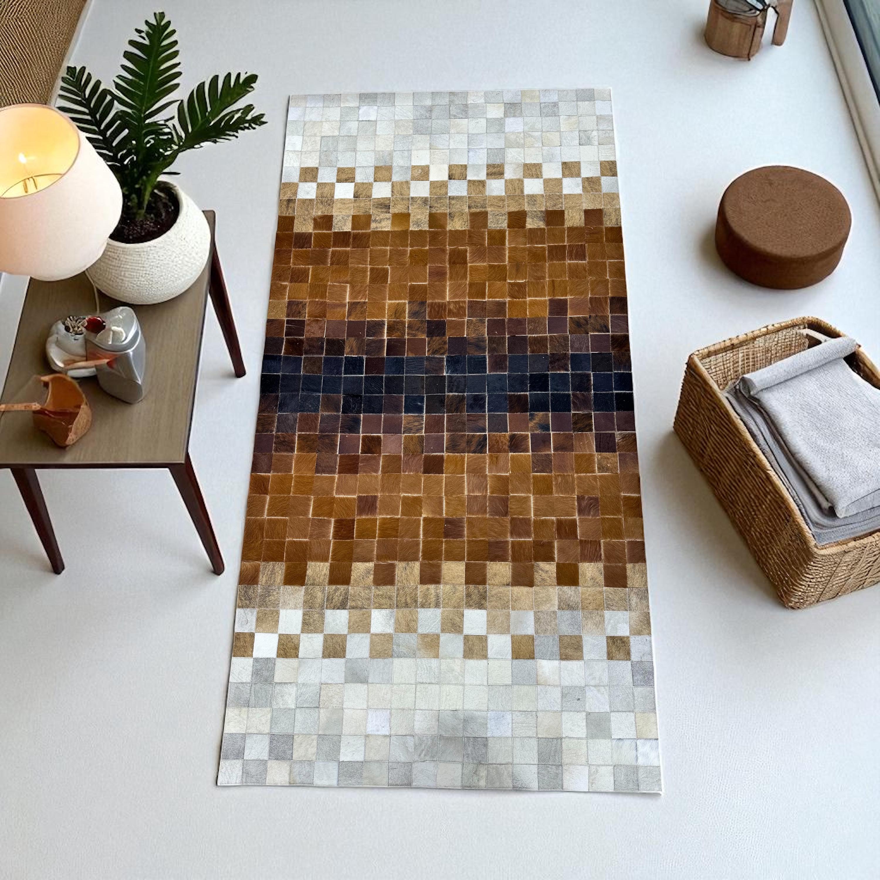 Perfect for living rooms, bedrooms, entryways, or offices, this handmade cowhide patchwork rug blends rustic charm with modern luxury. Each rug is unique, featuring natural variations in tone and hide texture for a truly one-of-a-kind piece.