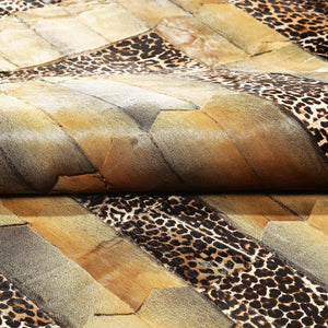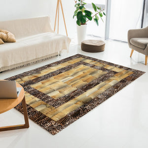 This sealskin patchwork rug is a handmade luxury carpet featuring a bold leopard-pattern border and warm natural tones. Crafted from genuine sealskin, it combines exotic design with durability, making it a standout piece for living rooms, bedrooms, or modern interiors. With custom size options, it brings uniqueness and elegance to any home.