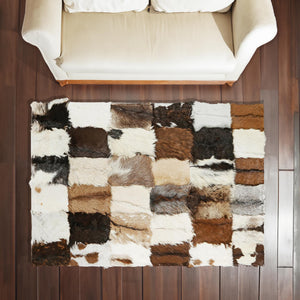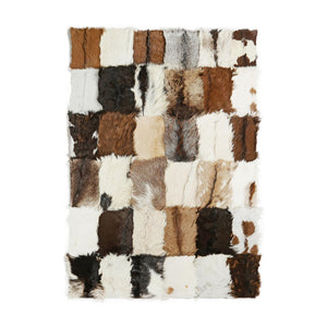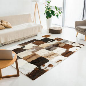 Handmade Cowhide Patchwork Rug – Natural Brown and White Leather Area Rug