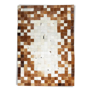 Brown & White Checkered Patchwork Calfskin Carpet, Living Room Area Rug