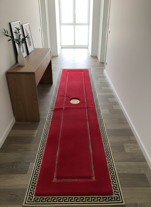 Bring warmth, comfort, and bold color into your home with this Red Plush Runner Rug. Featuring a dense and ultra-soft plush surface, it provides a smooth, cozy feel underfoot while adding a striking visual element to long hallways and entryways. The gold accent lines and central medallion elevate the design, giving the rug a luxurious, modern appearance that complements both classic and contemporary interiors.