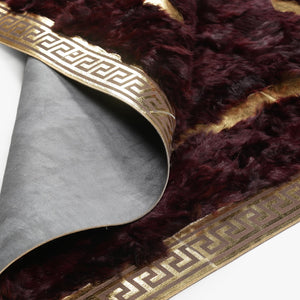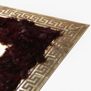 ntroduce warmth and sophistication to your home with the Burgundy & Gold Tuscan Fur Rug. Crafted from genuine sheepskin, this dark red fur carpet features a luxurious gold border, blending classic elegance with modern style. The rich wine red tones and plush shaggy texture make it a perfect addition to living rooms, bedrooms, or offices. Handcrafted with care, this premium fur rug combines durability with beauty, ensuring it becomes a timeless centerpiece in your decor. Ideal as a housewarming gift or for adding a touch of luxury to your space.