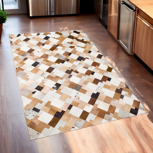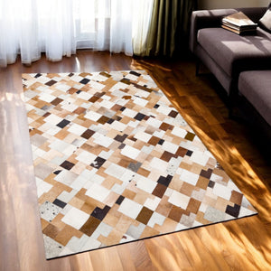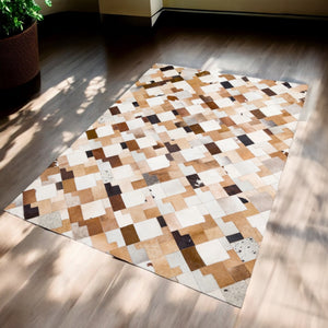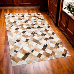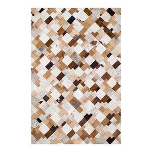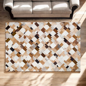 Tricolor Geometric Design Patchwork Cowhide Rug