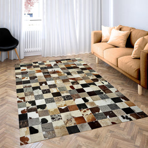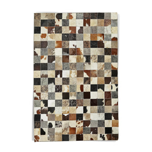 Cow Skin Textured Brown & Cream Checkered Cowhide Rug