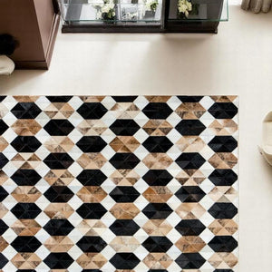 Brown and Black Cowhide Patchwork Rug, Handmade Living Room Carpet