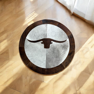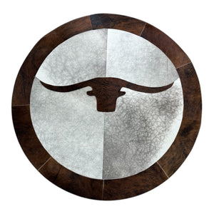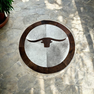 Round Cowhide Longhorn Rug – Handmade Genuine Leather Carpet